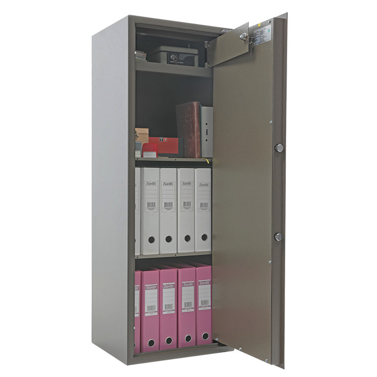 - Внутри — запираемое кассовое отделение, 2 съемные полки.